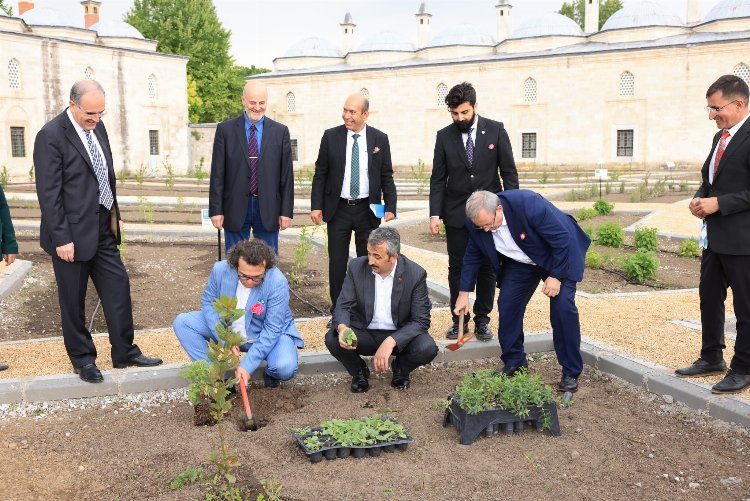 Edirne Valisi Yunus Sezer’in de katıldığı programın açılışında konuşan Trakya Üniversitesi Rektörü Prof. Dr. Erhan Tabakoğlu, Külliye bahçesinde daha önce tıbbi ve aromatik bitkilerin ekildiğine dair bir anekdot gördüklerini ve geleneği canlandırmak istediklerini belirterek; “Burada medrese vardı, şifahane vardı ve buranın hekimleri ilaç hazırlarken tıbbi ve aromatik bitkilerden faydalanıyorlardı. Bu çok derin, kadim bir kültür. Kimyasal tıbba başladığımız yüzyıldır biraz unutuldu ama biz bu Külliye’nin bahçesine tıbbi ve aromatik bitkiler ekerek, hem yeni neslin bu bitkileri tanımasını, hem de zaman içerisinde büyüyerek bu bitkilerin belki küçük kullanımlarını sağlayacağız. Belki Eczacılık Fakültesi’nde yeni çalışmaları, yeni ilaç terkiplerini deneyeceğiz. Çok yakıştığını düşünüyoruz. Zaten bu bahçede daha önce bu tür bitkilerin ekildiğine dair bir anekdot gördüğümüz için o geleneği canlandırmak için bunu yapmış olduk” dedi.