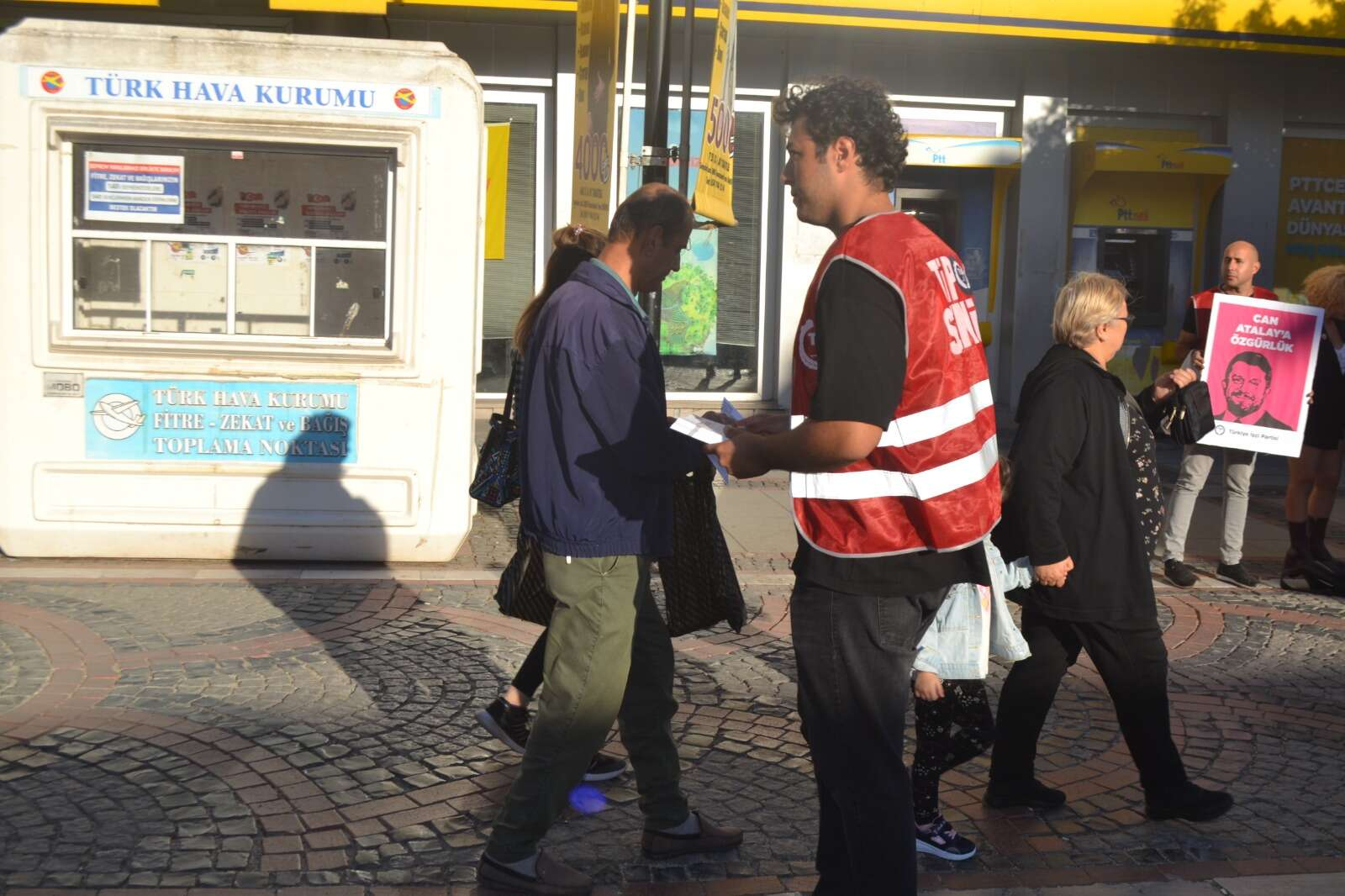 Açıklamadan sonra broşür dağıtan TİP’liler, vatandaşlardan Atalay için destek istediler.