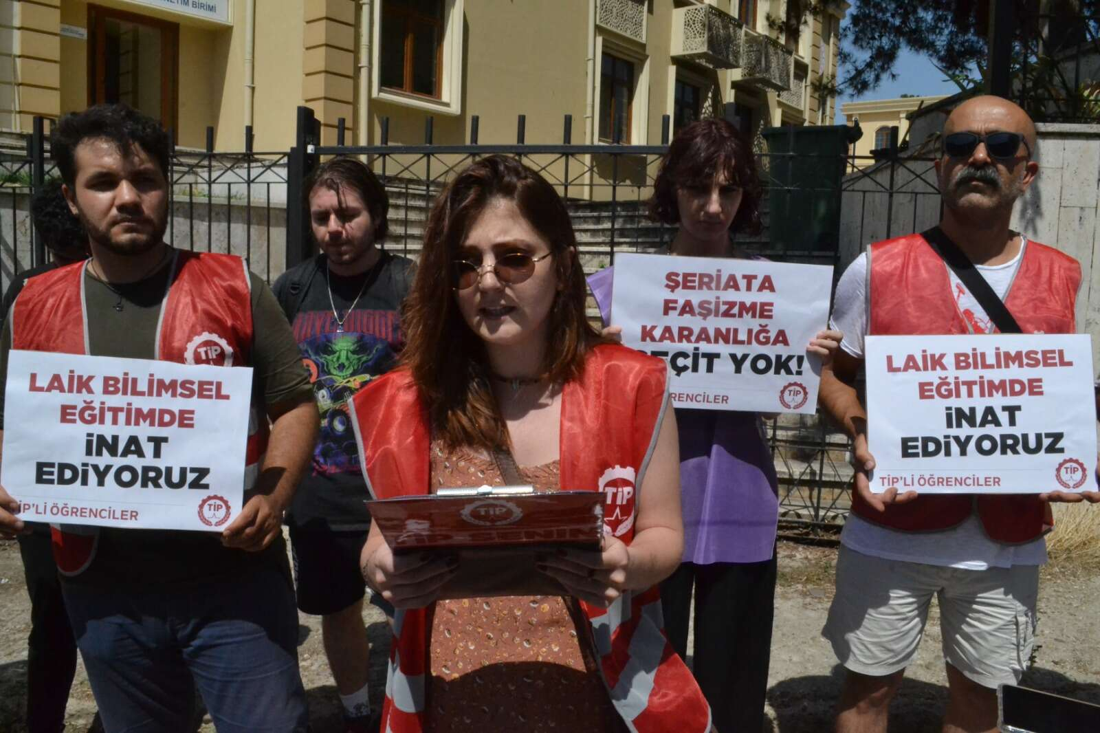 TİP İl Örgütü Üyesi Zelal Özcan tarafından yapılan açıklamada, kız çocuklarının bilimsel, laik ve çağdaş eğitim görme hakkı vurgulandı. Basın açıklaması sırasında TİP İl Örgütü üyeleri de, ‘Laik, Bilimsel Eğitimde İnat Ediyoruz’, ‘Geleceğimizi Gericilere Teslim Etmeyeceğiz’ ve ‘Şeriata, Faşizme, Karanlığa Geçit Yok’ yazılı dövizler taşıdılar.