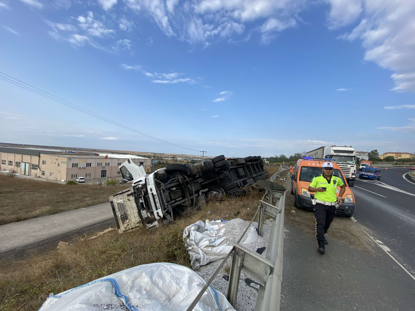 Öte yandan, devrilen TIR ve yüklü malzemeler maddi hasar gördü. Kaza yapan TIR, saatler süren çalışmalar sonrası vinç vasıtasıyla olay yerinden kaldırıldı.