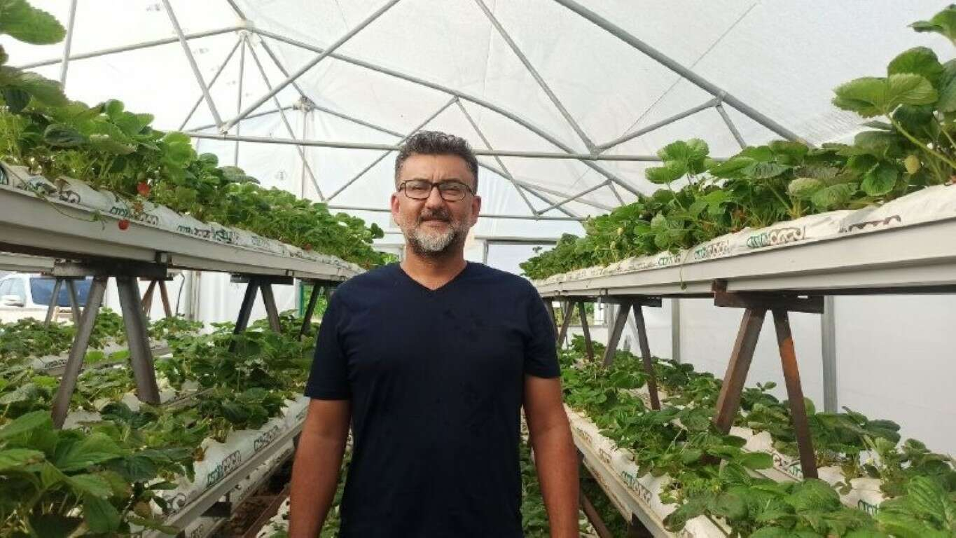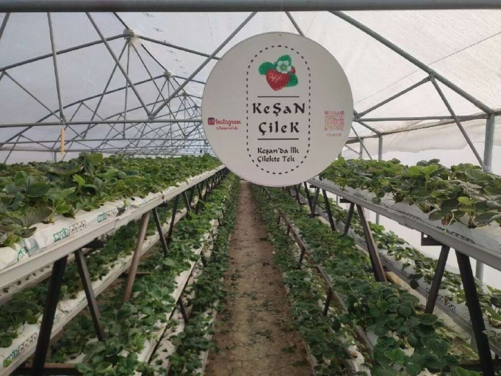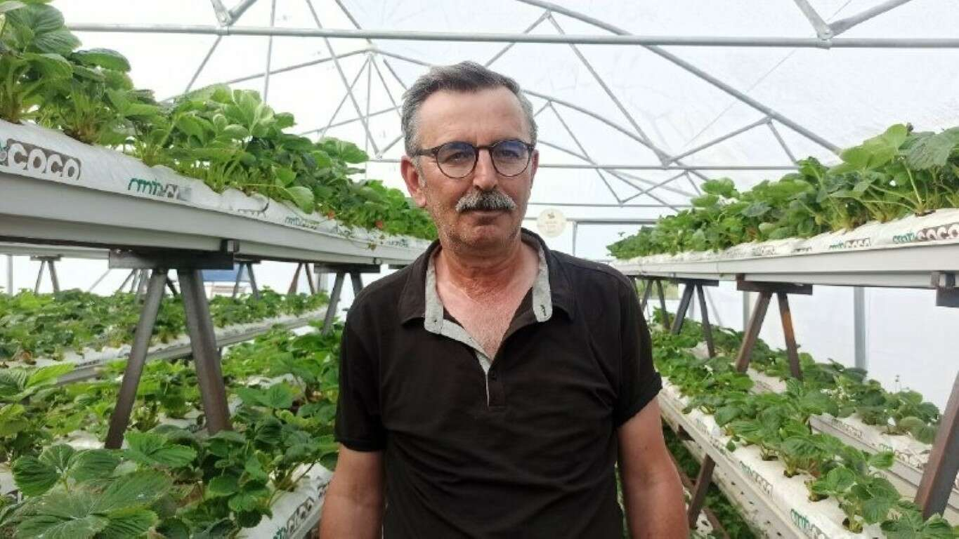 Sakarya, Keşan'da ilk kez kendisinin deneyeceği topraksız çilek üretimi için 250 metrekarelik sera kurdu.