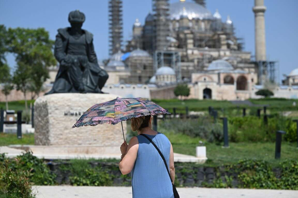 Edirne'de 37 derece ölçülen sıcak havadan bunalanlar gölgelik alanlar, park ve bahçelerde serinlemeye çalışıyor.