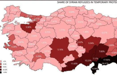 Bu oranlara göre Edirne nüfusunun yüzde 0.27’si, Kırklareli, nüfusunun yüzde 0,28’i ve Tekirdağ ise nüfusunun yüzde 1,12’si oranında Suriyeli sığınmacı barındırarak, yüzde 2 altında oranla, en alt seviyede kaldı. Nüfusunun, yüzde 0,04 oranıyla Iğdır ve Artvin en az Suriyeli sığınmacı barındıran iller olurken, Kilis yüzde 38,47, Hatay yüzde 18,08, Gaziantep yüzde 17,93 ve Şanlıurfa yüzde 15,19 ile en fazla Suriyeli barındıran iller oldular.