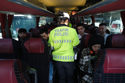 Ekipler, denetimde yolcularında emniyet kemerlerini kontrol edip bilgi verdi.