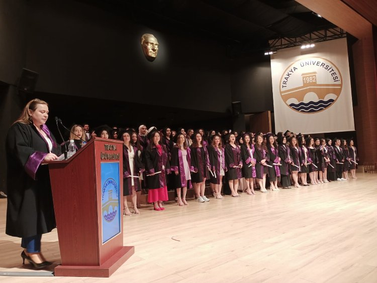 Trakya Üniversitesi’nde 2023/2024 akademik yılı mezuniyet törenleri başladı. Balkan Kongre Merkezi’nde bugün düzenlenen ilk mezuniyet töreni, Sağlık Bilimleri Fakültesi Hemşirelik Bölümü öğrencileri için gerçekleştirildi.
