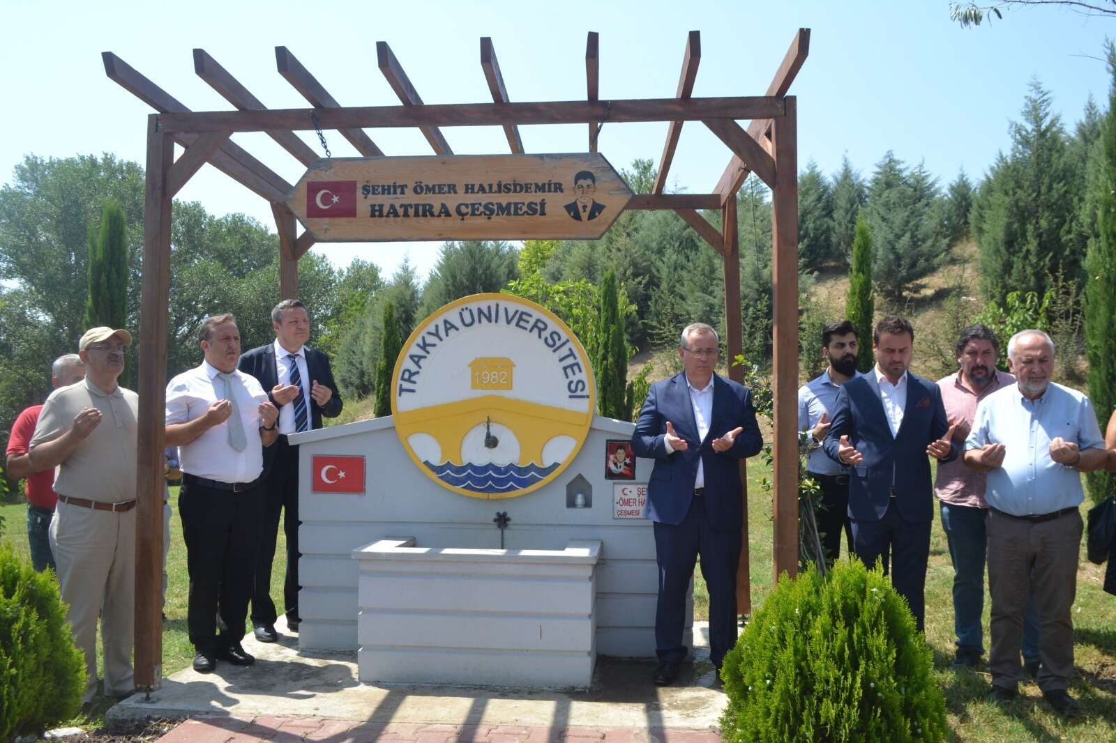 Rektör Prof. Dr. Erhan Tabakoğlu ve beraberindekiler hep beraber 15 Temmuz Şehitler Yolu’ndan yürüyerek Şehit Ömer Halisdemir çeşmesine geldiler ve burada şehitler için dua okudular. Burada yaptığı konuşmada 15 Temmuz’un Türk Milleti için önemli bir dönüm noktası olduğunu belirten rektör Tabakoğlu, “Bu büyük milletin yürüyüşüne vurulmak istenen büyük bir darbe gerçekleştirilmek istendi. Vatanımızın tehlikeye gireceği bilinmez bir sürece doğru sürüklenmek istedik. Kökü dışarıda bir istihbarat çalışmasının eseri olan bir düşman eliyle organize edilmiş bu büyük kalkışmaya, büyük Türk milleti engel oldu. Cumhurbaşkanımızın büyük cesaretiyle, milletimizi davet ederek bu büyük aziz ve necip millette çıplak elle silahları, tankları durdurdu ve bu hayasız gidişe bir son verdi. Ve bu sayede bayrağımızın altında bu aziz millet, bu güzel topraklarda yürüyüşüne devam edebiliyor” şeklinde konuştu.