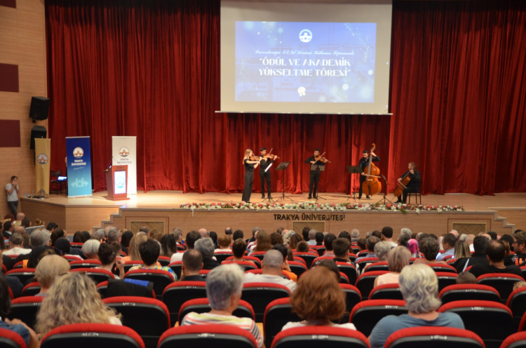Tören, Balkan Kongre Merkezi’nde geniş bir katılımla yapıldı. Akademik ve idari personel, öğrenciler ve davetlilerin katıldığı etkinlikte, üniversitenin geçmişten bugüne kat ettiği mesafe ve geleceğe yönelik hedefleri vurgulandı. Saygı duruşu ve İstiklal Marşı ile başlayan tören, Trakya Üniversitesi Devlet Konservatuvarı öğrencileri tarafından verilen konser ile devam etti.