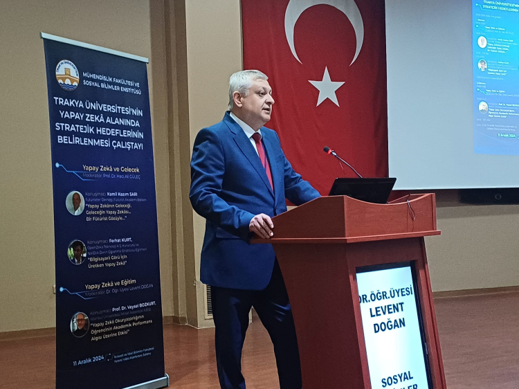 Edirne'de Trakya Üniversitesi (TÜ) İktisadi İdari Bilimler Fakültesi Fehmi Yıldız Konferans Salonu'nda, TÜ'nün yapay zekaya yönelik stratejilerinin belirlendiği bir çalıştayın açılışını gerçekleştirdi. TÜ Sosyal Bilimler Enstitüsü Müdürü Dr. Öğr. Üyesi Levent Doğan, böyle bir çalıştay ile bir araya gelerek, yapay zeka gibi önemli bir kavram hakkında hedeflerin belirlenmesi yönünde atılan bu adımın çok önemli olduğunu belirtti.