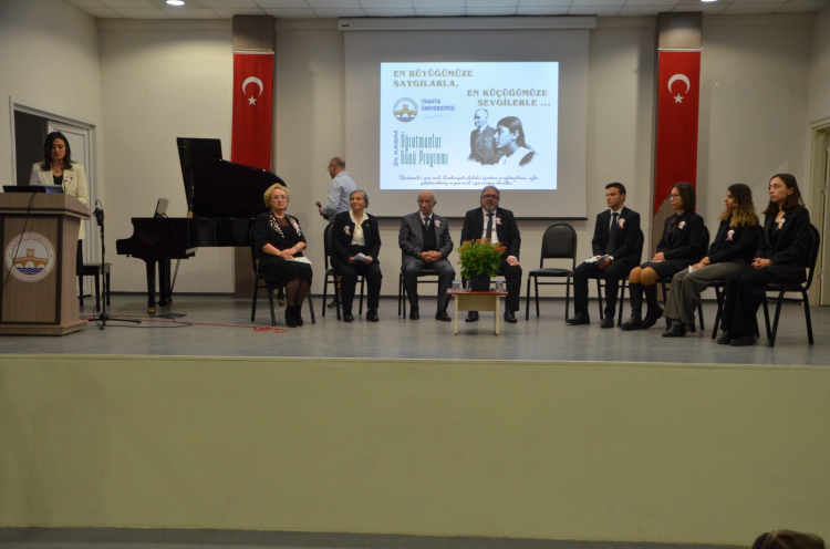 Trakya Üniversitesi Eğitim Fakültesi Özel Eğitim Bölümü, 24 Kasım Öğretmenler Günü’nü anlamlı bir programla kutladı. Mehmet Akif Ersoy Eğitim Binası Konferans Salonunda gerçekleşen etkinlik saygı duruşu ve İstiklal Marşı ile başladı. Açılış konuşmasını yapan Eğitim Fakültesi Dekanı Prof. Dr. Eylem Bayır, öğretmenlerin toplumun gelişimindeki rolüne dikkat çekti.