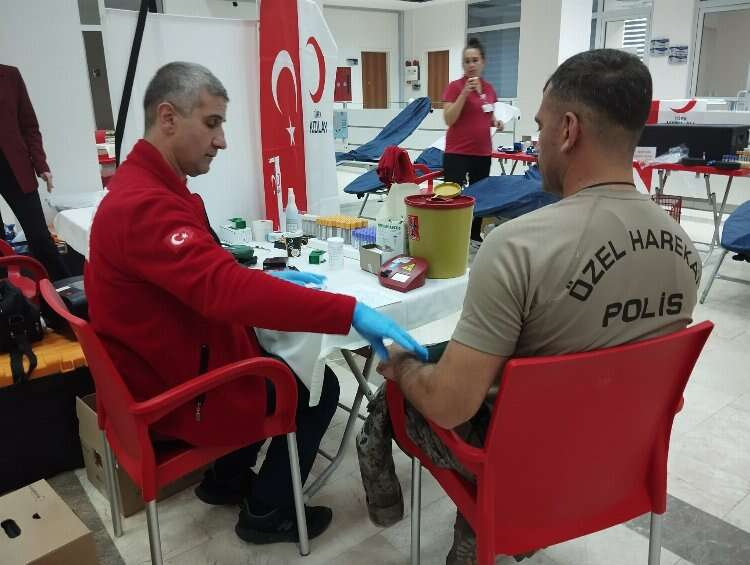 “Kan, tek kaynağı insan olan hayati bir sıvı” ifadelerini kullanan Edirne Kızılay Ekip Doktoru Erhan Aksoy ise “Emniyet Müdürlüğümüz sadece bu gün değil, geçmiş dönemlerde de kan bağışında Kızılay’a olan desteklerini yerine getirmişlerdir. Bugün LÖSEV farkındalık haftasıyla ilgili de kemik iliği bekleyen çocuklarımız için kök hücre bağışında da bulundular. Hem kanlarıyla, hem kök hücreleriyle çok büyük destek yaptılar. Aynı desteği tüm kurumlarımızdan ve tüm vatandaşlarımızdan bekliyoruz. Sağlıklıyken kan verelim ki ihtiyacımız olduğunda aramak zorunda kalmayalım. Tüm vatandaşlarımızı Emniyet Müdürlüğü nezdinde davet ediyoruz” şeklinde konuştu.
