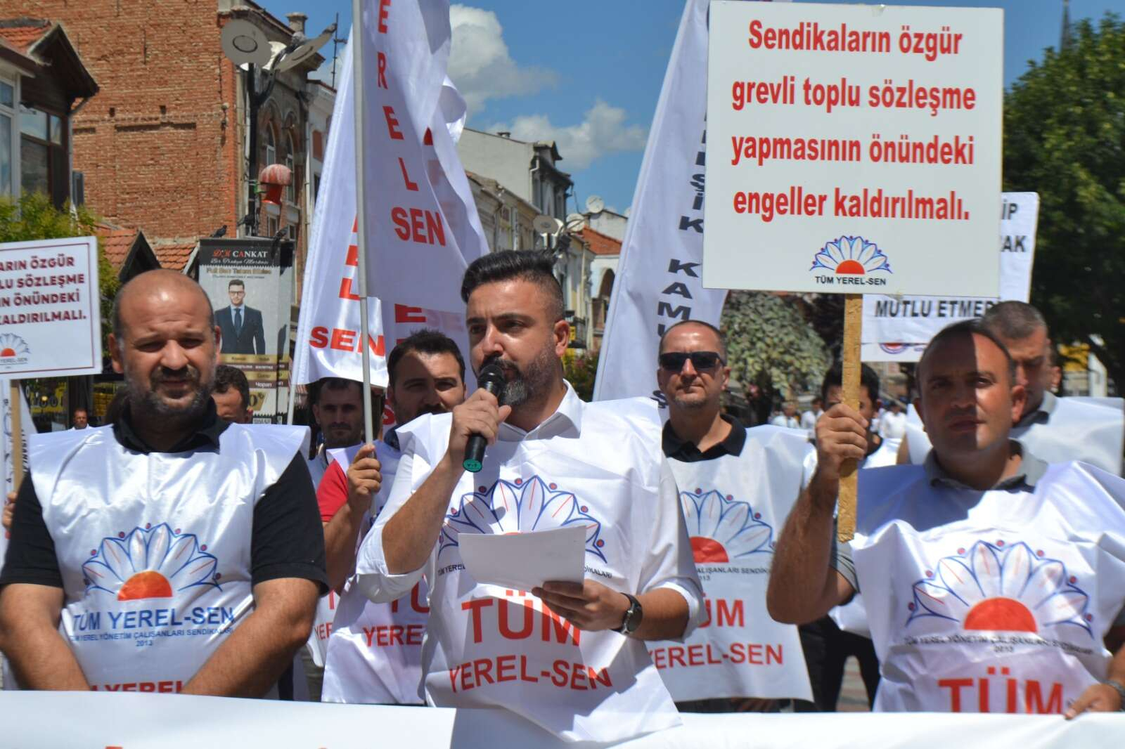 Tüm Yerel Yönetim Çalışanları Sendikası (Tüm Yerel-Sen) Edirne Şubesi, 1 Ağustos tarihinde başlayan 7’nci Dönem Toplu Sözleşme görüşmeleri ile ilgili açıklama yaptı. Saraçlar Caddesi’nde düzenlenen açıklamada sendika üyeleri, “Asgari yaşamı reddediyoruz. İnsanca yaşam için özgür toplu sözleşme” diye haykırdılar.