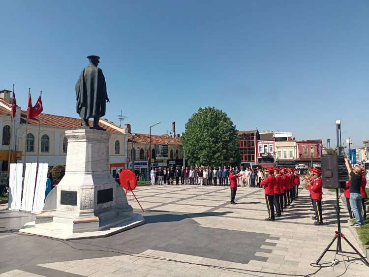 Çelenk sunma programına; İl Kültür ve Turizm Müdürü Kemal Soytürk, Müdür Yardımcısı Kenan Koçak, sivil toplum örgütlerinin temsilcileri ile turizm sektöründeki çeşitli işletmeciler katıldı. İl Müdürü Soytürk’ün Atatürk anıtına çelenk sunması ile başlayan törende, Edirne Belediye Bandosu eşliğinde Türkiye Cumhuriyeti’nin kurucusu Mustafa Kemal Atatürk, silah arkadaşları ve tüm şehitler anısına 1 dakikalık saygı duruşunda bulunulurken; İstiklal Marşı okundu.