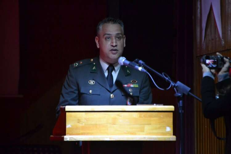 Türkiye Cumhuriyeti’nin kurucusu Mustafa Kemal Atatürk, silah arkadaşları ve tüm şehitler anısına bir dakikalık saygı duruşu ve İstiklal Marşı’nın okunması ile başlayan programda Türk Silahlı Kuvvetleri adına günün anlam ve önemini belirten konuşmayı Piyade Binbaşı İbrahim Ağırkaya yaptı. Ağırkaya, konuşmasında Çanakkale Zaferi’nin önemine dikkat çekerken; “Dünya var oldukça bu topraklar Türk yurdu olmaya devam edecektir. Başta Türkiye Cumhuriyeti’nin kurucusu ulu önder Atatürk ve onun kahraman silah arkadaşları olmak üzere şanlı tarihimiz boyunca vatanımızın bölünmez bütünlüğü ve milletimizin bağımsızlığı uğruna canlarını feda eden aziz şehitlerimizi ve ebediyete intikal eden gazilerimizi rahmet ve minnetle anıyor, kahraman gazilerimize şükranlarımızı sunuyoruz. Ruhunuz şad olsun” dedi.