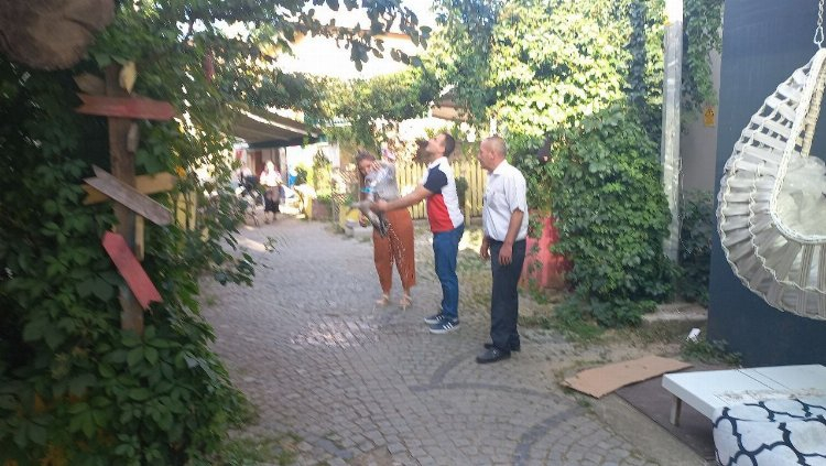 Cadde esnafının merdivenler ile aşağıya indirdiği yavru martı caddede dolaşmaya başlayınca başka bir esnaf tarafından tekrardan çatıya atılan martı, annesi ve diğer martılar tarafından alınarak uçuruldu.
