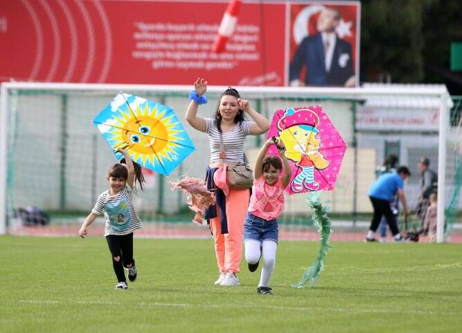 Gençlik Merkezi Müdürlüğünce Atatürk Stadı'nda düzenlenen etkinlikte uçurtma dağıtıldı.