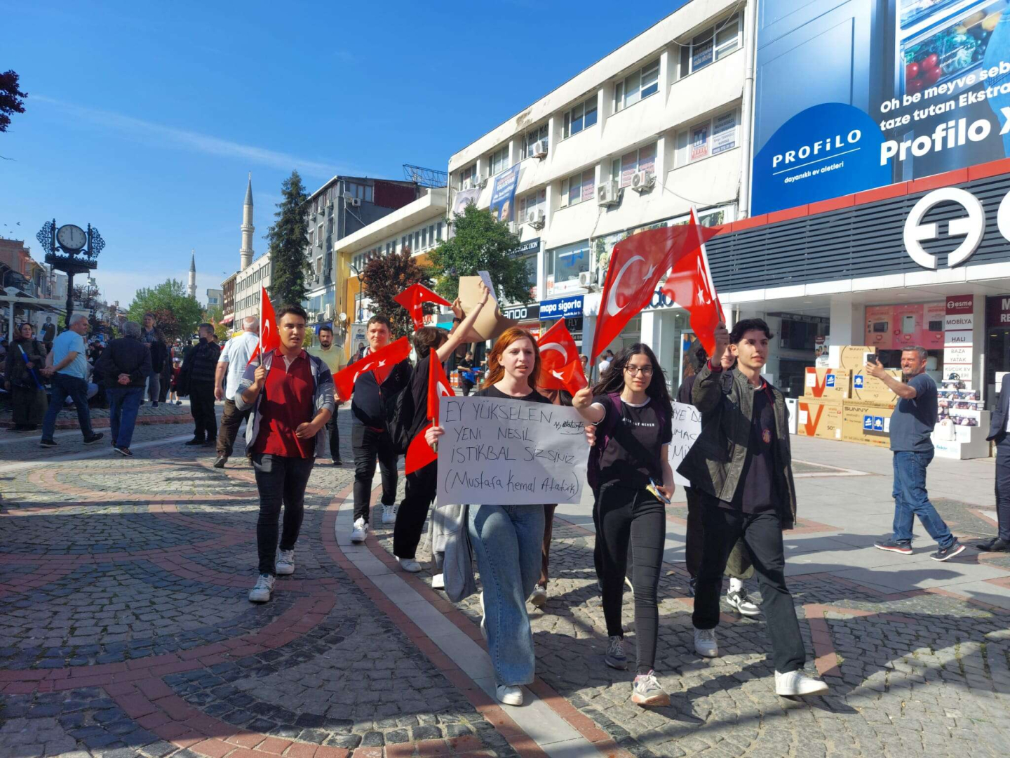 AK Parti’nin Edirne’deki mitinginden sonra bir grup genç bozkurt işareti yaparak “Ülkemde mülteci istemiyorum” diye sloganları attı. Gençler üzerinde “Ey yükselen yeni nesil istikbal sizlersiniz” ve “Ne mutlu Türk’üm diyene” yazılı pankartlar taşıyarak yürüdüler.