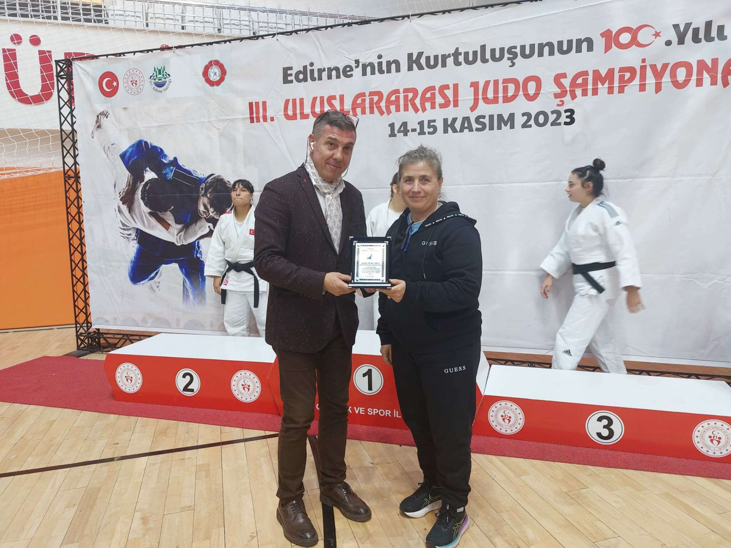 Türkiye Judo Federasyonu Başkanlığı Edirne İl Temsilciliği tarafından Edirne’nin işgalinden kurtuluşunun 101. Yıl Dönümü ve Cumhuriyetin 100’üncü yılı etkinlikleri kapsamında düzenlenmiş olan 3. Uluslararası Judo Şampiyonası sona erdi. Program sonunda Judo İl Temsilcisi ve Trakya Üniversitesi Kırkpınar Spor Bilimleri Fakültesi Antrenörlük Bölümü Öğretim Üyesi Doç. Dr. Şengül Demiral, Türkiye Judo Federasyonu Teknik Kurul Başkanı Deniz Şili’ye plaket taktim etti.