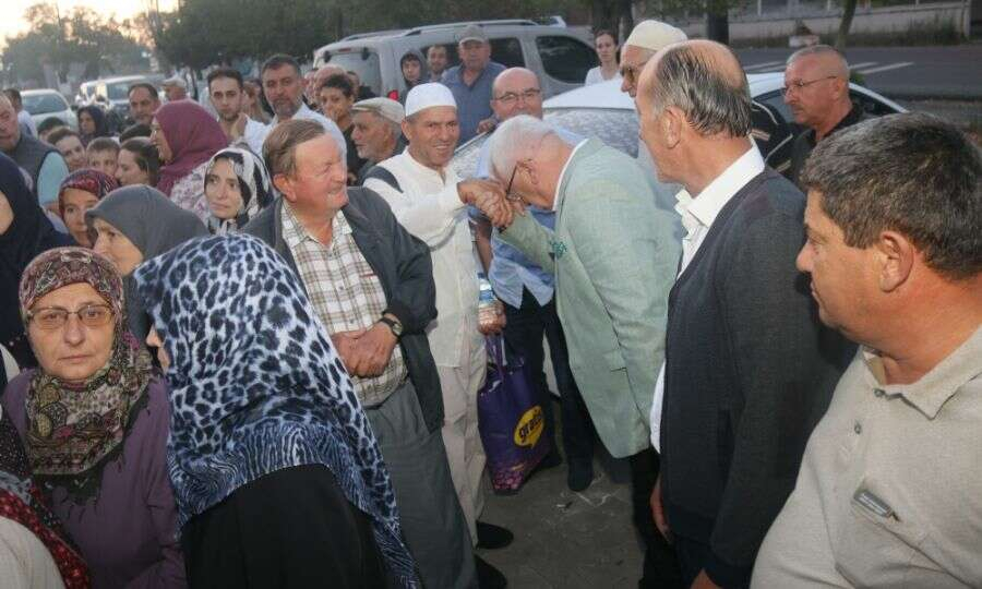 Velimeşe Mahallesi’ndeki Merkez Camiinde ikindi namazından sonra umreye gidecek olan vatandaşlar için düzenlenen uğurlama programına katılan Ergene Belediye Başkanı Rasim Yüksel vatandaşlara hayırlı yolculuklar dileklerinde bulundu.