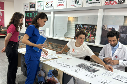 Gazze'ye yönelik saldırıları protesto etmek ve farkındalık oluşturmak isteyen öğrenciler broşürlerle vatandaşları ve sağlık çalışanlarını İsrail ürünlerinin kullanılmaması, onların yerine kullanılabilecek ürünler hakkında bilgilendirdi.