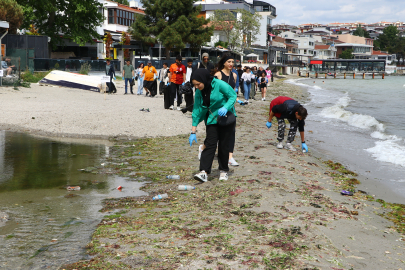 NKÜ Coğrafya Bölümünden 50 öğrenci, farkındalık oluşturmak amacıyla Değirmenaltı Mahallesi'nde plajda bir araya geldi.