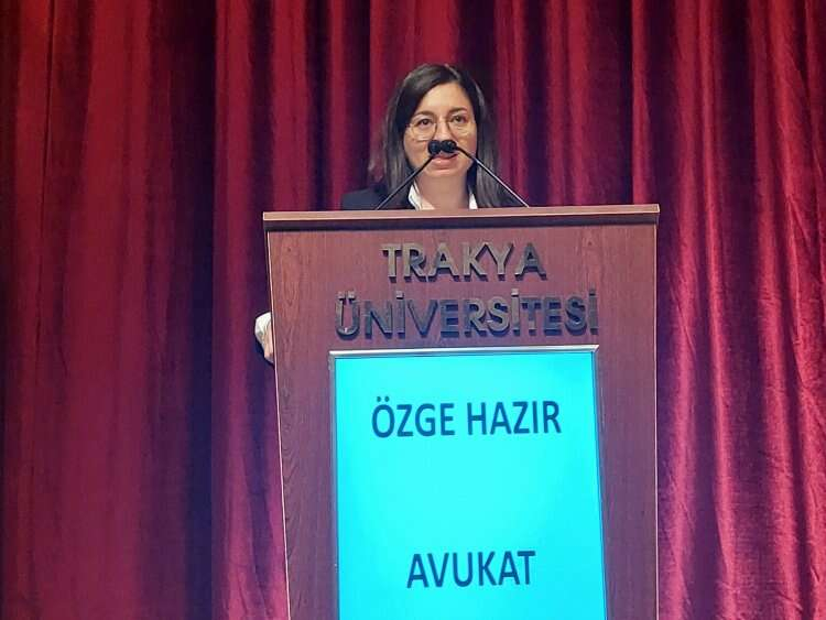 Ailenin Korunması ve Kadına Yönelik Şiddetin Önlenmesine Dair 6284 sayılı kanun ile ilgili bilgi veren Av. Özge Hazır şöyle konuştu: “Bu kanun ile şiddete uğrayan ve şiddete uğrama tehlikesi bulunan kadınları, çocukların, aile bireylerinin, tek taraflı ısrarlı mağduru olan kişilerin korunması ve bu kişilere yönelik şiddetin önlenmesi amaçlanır. Ayrımcılık yasağı önemle vurgulanmıştır. Bu madde şiddete yönelik bir kalkan olmuştur.”