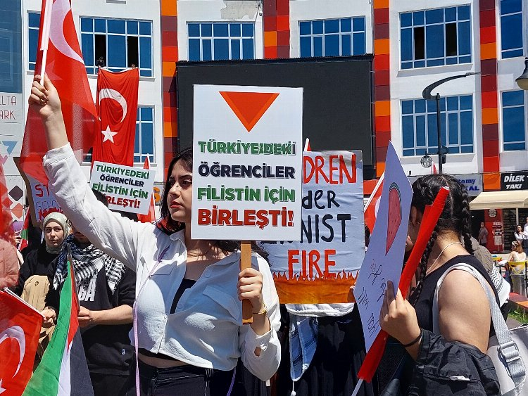 Basın metnini okuyan Çam, "1948’den bugüne kadar milyonlarca masum ve mazlum Filistinliyi göç, kıtlık ve ölümle sınayan İsrail yayılmacılığı, 7 Ekim 2023 itibariyle tarihin akışı içerisinde insanlığın utanç tablosu olarak değerlendireceği bir soykırım halini almıştır. 209 gündür çocuk, kadın, erkek, genç, yaşlı, engelli ayırt etmeksizin 35 bin kişinin İsrail barbarlığı tarafından katledildiği binlerce kişinin evinden, yurdundan göçe sürüklendiği, kundaktaki bebeklerin bombardımanlar sonucunda enkaz altında can verdiği bir soykırım yaşanmaktadır. İnsanlığın yaşadığı acıları; canı yananın rengine, dinine ve diline göre tasnif etmeyi, kınamayı ve lanetlemeyi kendisine paye bilen iki yüzlü egemen güçler ile uluslararası örgütler ise vahşeti yaşatan İsrail olunca bir kez daha sessiz kalmayı, katledilen bebeklerin görüntülerine karşı gözlerini kapatmayı, masum kadınların feryatlarına karşı kulaklarını tıkamayı tercih etmişlerdir. Egemen güçlere ve uluslararası örgütlere elindeki siyasi, askeri ve ekonomik gücü kullanarak sessizlik baskısı yapan sözde İsrail Devleti artık mızrağın çuvala sığmadığının farkına varmalıdır. Cumhurbaşkanımız Sn. Recep Tayyip Erdoğan liderliğinde uluslararası platformlara taşınan İsrail barbarlığı dünyanın çeşitli yerlerinde yaşayan dinleri, ırkları, renkleri ve dilleri birbirinden farklı olan ancak vicdanı Gazze’deki çocuklar ve kadınlar için atan yürekli insanlar tarafından protesto edilmeye başlamıştır" dedi.