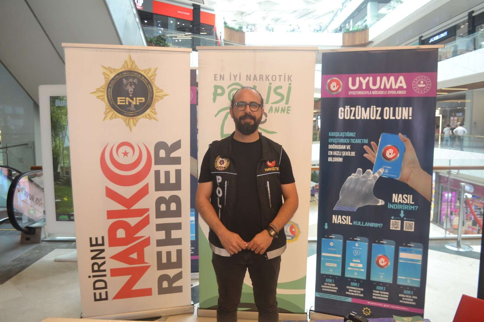 Edirne Emniyet Müdürlüğü Narkotik Suçlarla Mücadele polisleri, bir alışveriş merkezinde stant açtı. Açılan stantta uyuşturucuyla mücadele kapsamında vatandaşlara bilgi verilirken, uyuşturucu kullanımı ve satışını ihbar için kurulan UYUMA (uyuşturucu suçlarla mücadele) uygulaması hakkında da bilgiler verildi.