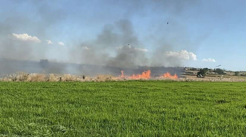 Yeni çevre yolu mevkiindeki bir tarlada anız yangını çıktı. Kısa sürede yangın, tarladaki saman balyalarına sardı.