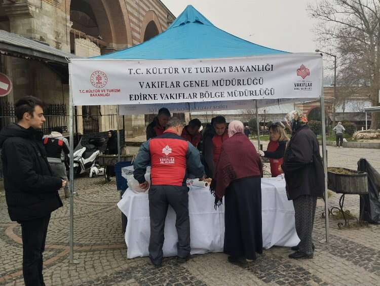 Edirne Vakıflar Bölge Müdürlüğü tarafından, Eski Cami önünde vatandaşlara çorba ikramı yapıldı. Hayır olması amacıyla dağıtıldığı belirtilen çorbanın, Ramazan başlayana kadar Cuma günleri Eski Cami önünde ikram edileceği söylendi.