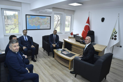 Edirne Vali Yunus Sezer Toprak Mahsulleri Ofisi’ne ziyaretinde Müdür İbrahim Duman'dan Edirne’de yürütülen çalışmalar hakkında bilgi alırken, tarımsal üretimin desteklenmesi ve çiftçilere sağlanan destekler ile ilgili konular görüşüldü.