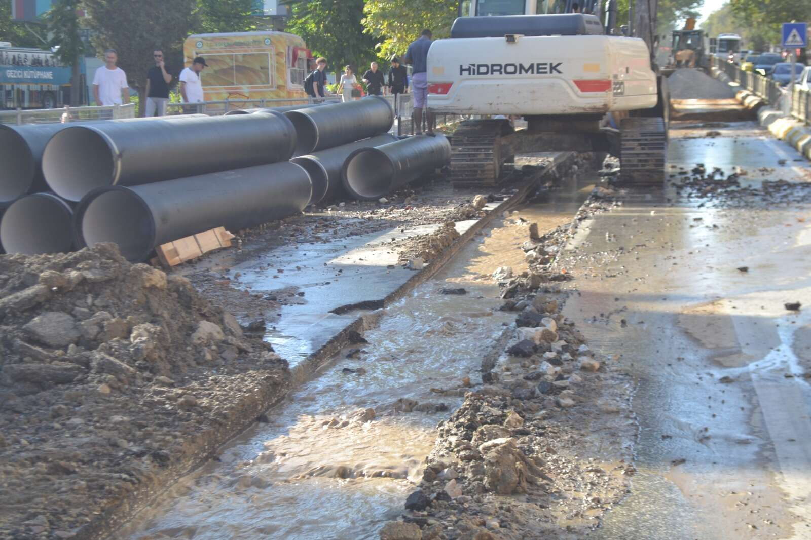 Mahalle sakinlerinden Hamit Baran; “Ben burada oturuyorum. Sabah çalışmaya başladıklarında patladı. Sabahtan beri akıyor, hiç gelip müdahale eden yok. En azından suyu kesseydiler.” dedi.