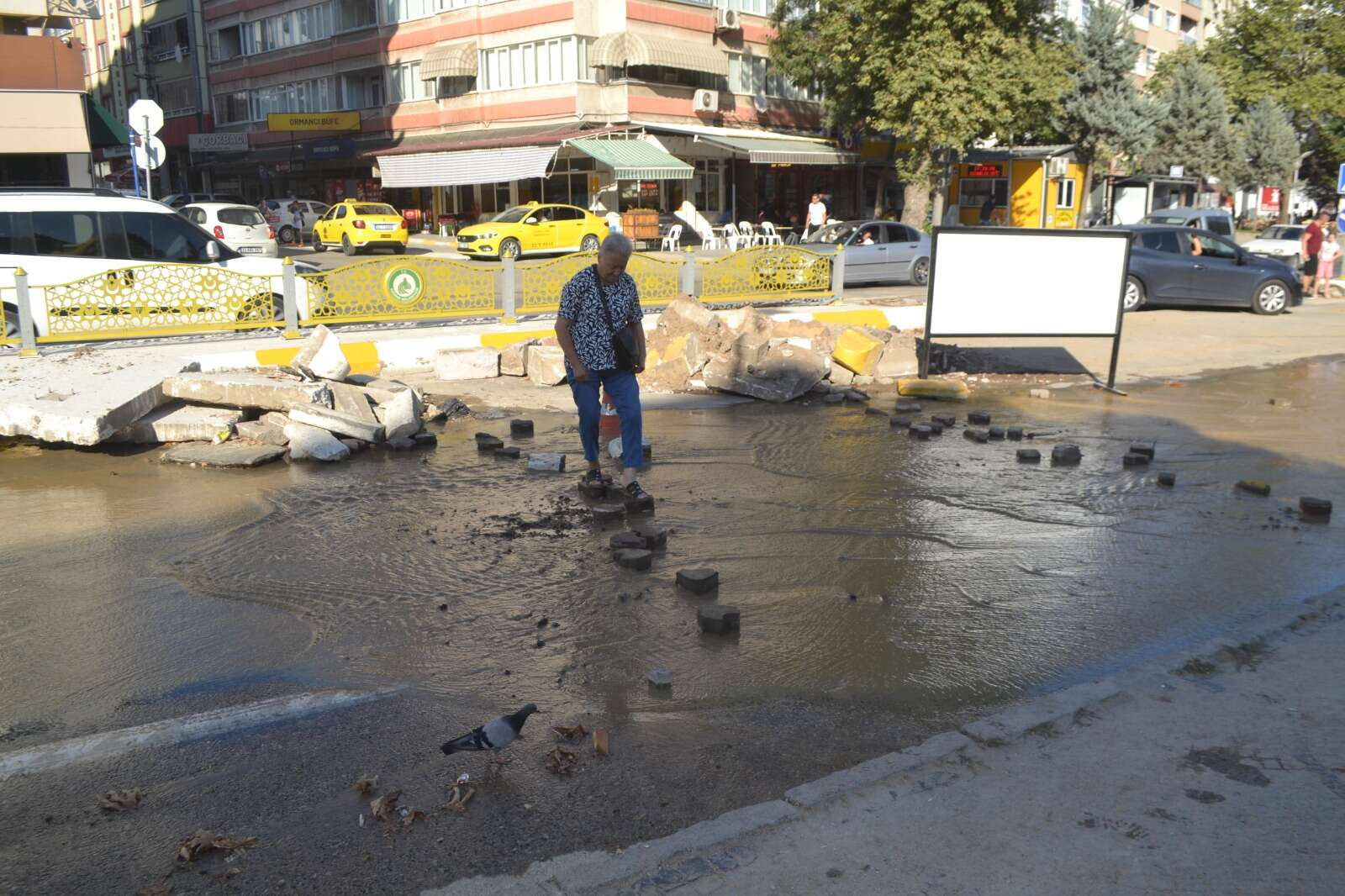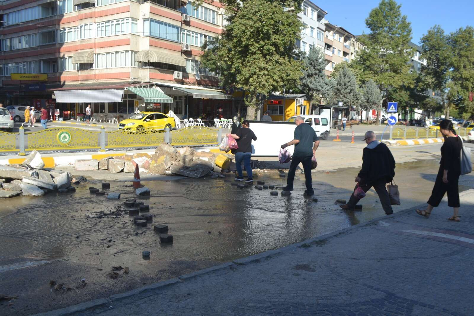 Yine bu bölgede oturan ve karşıdan karşıya geçmek için yola dizilen taşları kullanan Hüsniye Yapıcıoğlu ise “Bu çocuklar kaç günden beri çalışıyor. Olduysa bir aksilik buna isyan etmemek lazım ama tamiratın da yapılması lazım. Bir an önce düzeltilmesi gerekir. Su boşa akıyor” şeklinde konuştu.