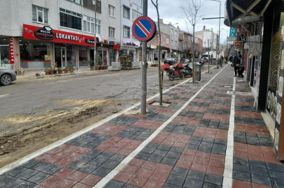 Vize Belediyesi Fen İşleri Müdürlüğü ekipleri, yol yapım çalışması tamamlanan Atatürk Caddesi'nde kaldırım düzenlemesinde bulunuyor.