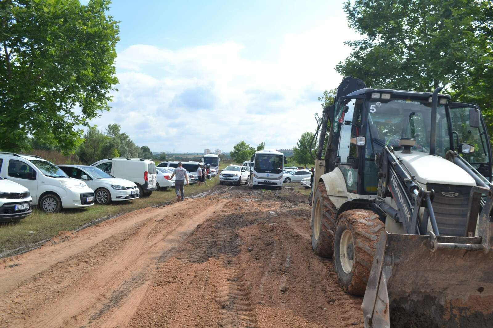 Edirne’de dün aksam etkili olan sağanak yağış Kırkpınar sahasını olumsuz yönde etkiledi. Yağış yolların çamur olmasına neden oldu.