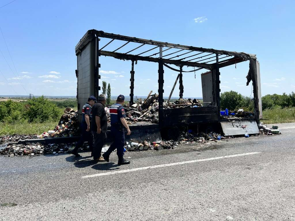 M.Ö'nün kullandığı 45 ** 8458 plakalı gıda yüklü TIR’ın dorsesi, Kırcasalih beldesi yakınlarında alev aldı.