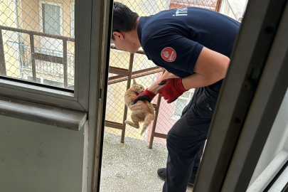 Binayı gezen ekipler, 4. kattaki yangın merdiveninde mahsur kalan kedi yavrusunu kurtardı.
