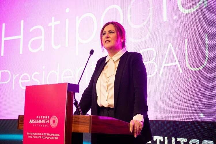 Bahçeşehir Üniversitesi Prof. Dr. Rektörü Esra Hatipoğlu ise yaptığı konuşmada, “Teknoloji çok hızlı gelişiyor. Yapay zeka bizim bütün süreçlerimizin, iş yapış biçimlerimizin ve hatta hayat pratiklerimizin içinde yer almaya başlıyor. Aslında insan yapımı olduğunu söylüyoruz. Bizim hakimiyetimizden bahsediyoruz. Ama öbür taraftan da belli bir süre zarfında mesela ‘biz istila mı ediliyoruz, tsunami mi geliyor’ diye bir düşünce biçimi içerisindeyiz. O yüzden bugün istedik ki bu yapay zeka dediğimiz şeyi çok ötekileştirmeden, içselleştirerek farklı sektörlerdeki başta eğitim olmak üzere etkilerini bir tartışalım. İnsan eliyle yapılan yapay zekanın insanın üstünde bir noktaya getirecek olan da yine bizlersek nasıl bir ön alacağız? Neler yapmalıyız? Yani bize iyi mi gelecek? Avantajları neler olacak? O açıdan en başından yani fikir haline gelişinden bugüne kadarki süreçte istedik ki biz yapay zekayı hiç bilmeyen de bizi dinlesin çok iyi bilen de. Hep birlikte bir araya gelelim ve tartışalım. Çünkü dediğimiz gibi bu bir gerçek. Bu bir olgu ve biz bunun üzerinden devam edeceğiz. Belki bu kadar korkulacak bir şey yok. Belki de gerçekten korkulacak bir şey var. Ama tartışmak zorundayız” diye konuştu.
