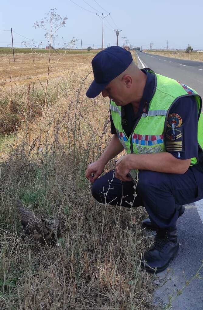 İl Jandarma Komutanlığı ekipleri Yeniçiftlik Mahallesi'nde yol kenarında bir baykuşun yaralı olduğunu fark etti.