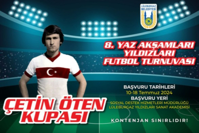 Lüleburgaz Belediyesinin gençlerin yaz akşamlarında sosyal aktivitelerini arttırmak, sporu geniş kitlelere sevdirmek ve Lüleburgazlı gençlerle futbol adamlarının birbirlerini tanımasını sağlamak amacıyla bu yıl Çetin Öten’in onuruna gerçekleştireceği 8. Yaz Akşamları Yıldızları Futbol Turnuvası Çetin Öten Kupası için başvurular alınmaya başlandı. Bu kapsamda turnuvada yer almak isteyenler 10 ile 18 Temmuz tarihleri aralığında takımını kurup LYSA’da bulunan Sosyal Destek Hizmetleri Müdürlüğü’ne başvurabilecekler.