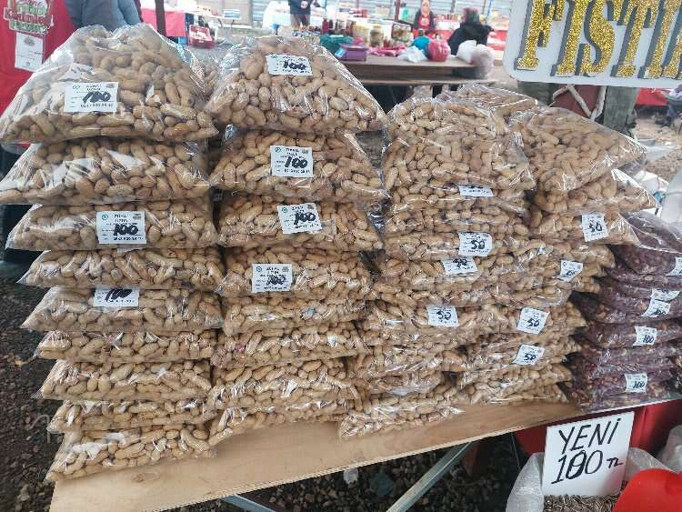 Edirne’de her hafta Pazar günü kurulan Kadın Emek Pazarı’nda yılın son günü yoğunluğun olmaması dikkat çekti. Meriç ilçesinin Nasuhbey Köyü’nde yetiştirdiği yer fıstıklarını pazarda satışa çıkaran İsmail Bülent Uzun, pazarın durumu ve alışverişler hakkında bilgi verdi.