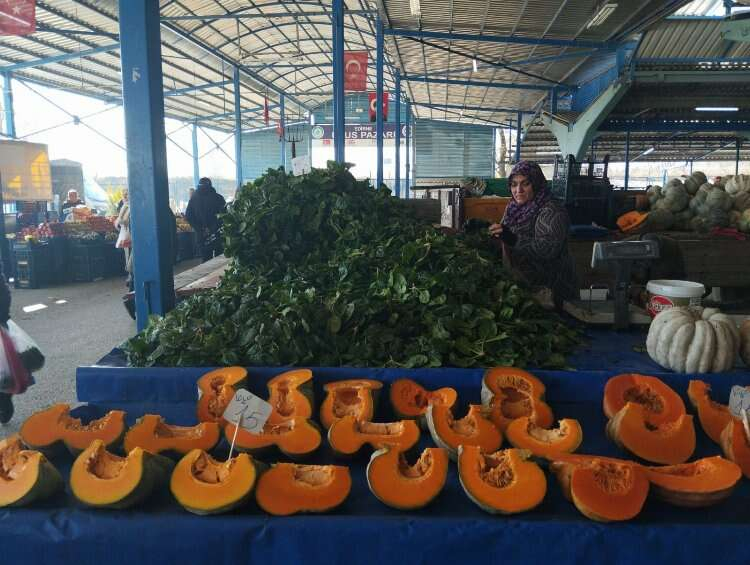 Bugün kurulan pazarda sabah saatlerinde esnaf tezgahlarını hazırlayarak müşterilerini beklemeye başladı. Mevsimi olması itibariyle özellikle ıspanak, pırasa, karnabahar, lahana, havuç, bal kabağı gibi ürünler bol miktarda ve ucuz olarak tezgahlarda yerini aldı.