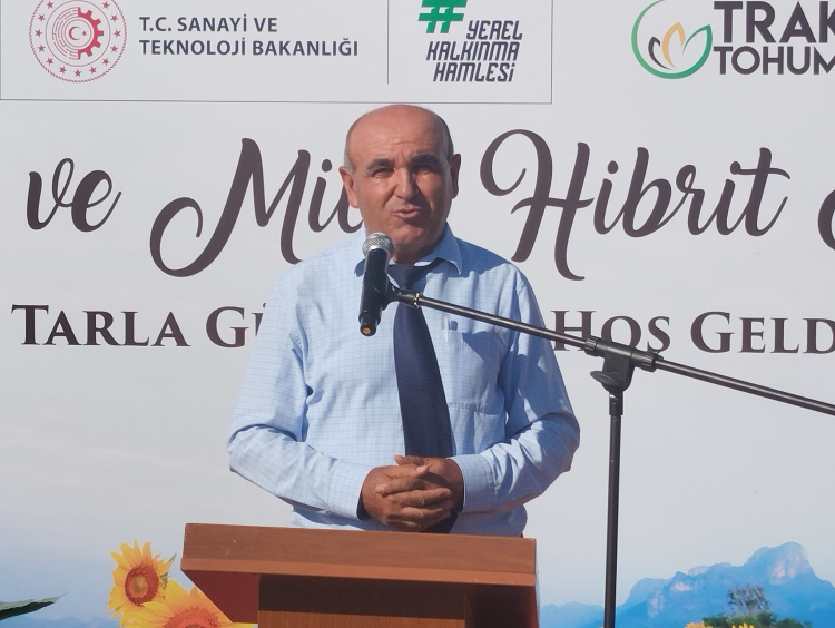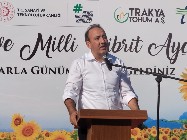 Ayçiçeği alanında Trakya’da ciddi bir altyapı olduğunu ve ayçiçeğiyle ilgili bir yenilik yapılacaksa bunun Trakya’da yapılmasının önemine değinen Trakya Kalkınma Ajansı Genel Sekreteri Mahmut Şahin; “Ayçiçeğiyle ilgili bir AR-GE, yenilik, bir yerli milli üretim olması gerekiyorsa bu nerede olmalıydı, tabii ki Trakya'da. Bu anlamda araştırma enstitümüzün, borsalarımızın, diğer il müdürlerimizin, çiftçilerimizin, kalkınma ajansımızın, şirketlerimizin, tohum şirketlerimizin bu konuda ciddi gayretleri vardı. Bu gayretleri gördük. Trakya'da bu anlamda ayçiçeğinin kültür anlamında ekilmesi, dikilmesi, biçilmesi konusunda ciddi bir altyapı var, bilgi birikimi var. Mekanizasyon noktasında, makine ekipman parkuru çok iyi. Verimli topraklarımız sulanabilir bir şekilde yapıldığında ayçiçeğinin ekilmesine çok müsait. Çiftçilerimizin de bu anlamda gayretleri var. Araştırma enstitümüzün, Tarım Bakanlığımızın çeşitleri var. Neden herkes bir araya gelmesin? Herkes bir araya geldi, yaklaşık Trakya Birlik gibi firmalarımızın da katılımıyla, kurumlarımızın katılımıyla 45 tane kurum ve kuruluş şirket bir araya geldi ve Trakya Tohum'u kurmuş olduk. Bu bir yönüyle aslında Türkiye'de ilk defa böyle çok paydaşlı, farklı kurumların, farklı paydaşların yani kamu sivil toplum, AR-GE, üniversite gibi birçok paydaşın bir araya geldiği ve uzun süre başarılı bir şekilde dağılmadan AR-GE yaptığı, tohumları toprakla buluşturduğu bir yer haline geldi. Bu anlamda da ben kalkınma ajansı olarak bir devlet olarak, Sanayi Bakanlığının temsilcisi olarak, bir Türk olarak, Trakya sevdalısı olarak hepinize teşekkür ediyorum. En büyük alkışı siz hak ediyorsunuz aslında. Bu gurur aslında sizin gururunuz, sizin onurunuz” diye konuştu.