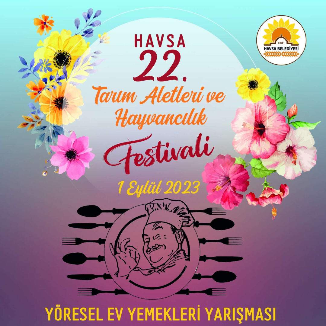 Havsa Belediyesi ve Havsa Kadın Meclisi işbirliği ile Havsa 22. Tarım Aletleri ve Hayvancılık Festivali kapsamında düzenlenecek olan 6. Yöresel Ev Yemekleri Yarışması için geri sayım başladı.