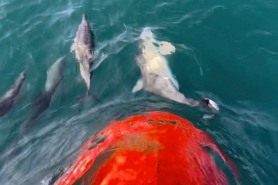 İstanbul ve Çanakkale Boğazlarından geçen gemilerle eşlik ederken görülen yunus sürüleri bu kez Marmara Adası’ndan Tekirdağ’a giden arabalı vapura eşlik ederken görüntülendi. Vapur’un burun kısmında onunla adeta yarışırcasına suyun üzerine zıplayarak ilerlemesi izleyenleri kendine hayran bıraktırdı. Bir süre gemiye eşlik eden yunus sürüsü cep telefonu kamerası ile kaydedildi.