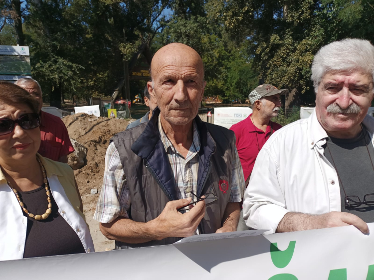 Söğütlük Doğal Kalsın Platformu Sözcüsü Ziya Gökerküçük tarafından okunan basın açıklamasında, yapımına devam edilen millet bahçesi projesinde kuruyan fidanlar ve zarar gören oturma gruplarına dikkat çekildi.