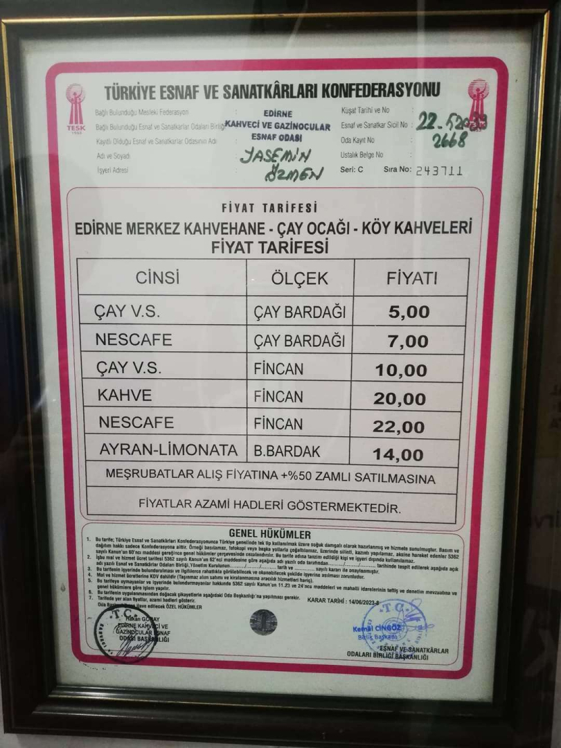 Edirne Kahveci ve Gazinocular Esnaf Odası zamlı çay fiyatlarını açıkladı. Son dönemde birçok üründe yaşanan zam furyasından çay da nasibini aldı. Geçtiğimiz günlerde çay’a yüzde 40 üzerinde zam gelmesinden sonra, Edirne Kahveci ve Gazinocular Odası da bardak çay fiyatını 5 lira olarak açıkladı.