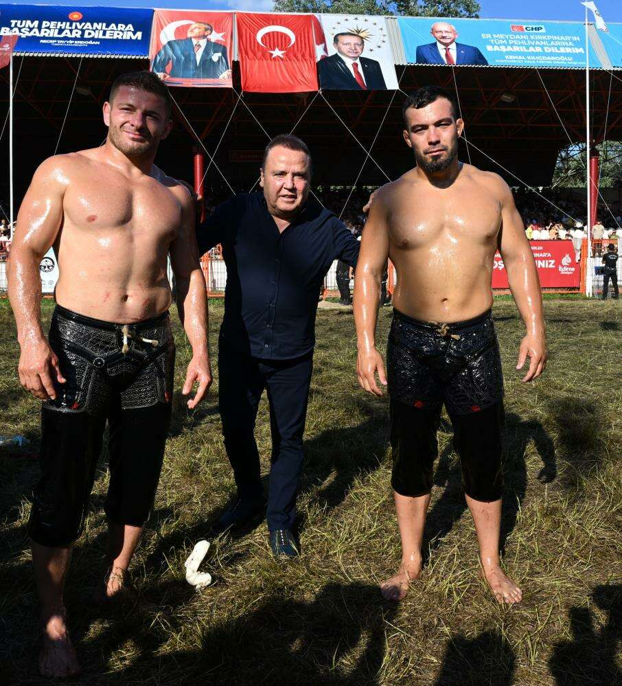 662’nci Tarihi Kırkpınar Yağlı Güreşleri’nde altın kemeri alan başpehlivan Yusuf Can Zeybek, memleketi Antalya’dan büyük destek gördü. Kendisini eşi, ailesinin yanı sıra hiç bırakmayan diğer isim ise Antalya Büyükşehir Belediye Başkanı Muhittin Böcek oldu.