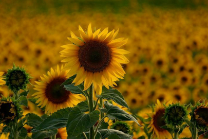 Bahar yağışları ve büyüme dönemindeki mevsim şartlarının istenen düzeyde ilerlemesiyle güzel bir seviyeye ulaşan ayçiçeği de sıcaklarla mücadele ediyor.