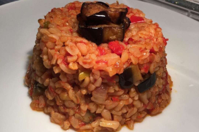 Patlıcanlarımızı soyduktan sonra tuzlu suyun içerisinde 10 15 dakika bekletelim böylece daha lezzetli ve acısız bir patlıcan elde edeceğiz. Yağ ile doğradığımız yemeklik soğanı bir tencerede soğan pembeleşene kadar kavuralım. Sonra biberleri ve patlıcanı ilave edip kavuralım. Daha sonra domatesleri ekleyip bulguru koyalım. Suyunu ve tuzunu ilave edip pişmeye bırakalım.