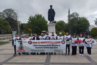 HAK-İŞ Edirne Temsilciliği ve bağlı Öz Sağlık – İş sendikası 1 Mayıs’ı, Edirne’deki Atatürk anıtında yapılan bir basın açıklamasıyla kutladı. HAK-İŞ Edirne Temsilcisi Emre Promet’in okuduğu açıklamada işçi haklarının yanı sıra Filistin’deki zulüm de vurgulandı.